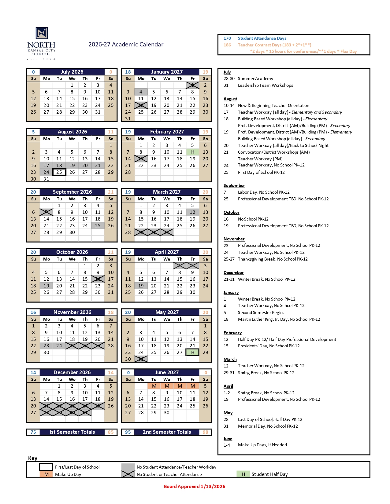 North Kansas City School District Calendar 2026-2027