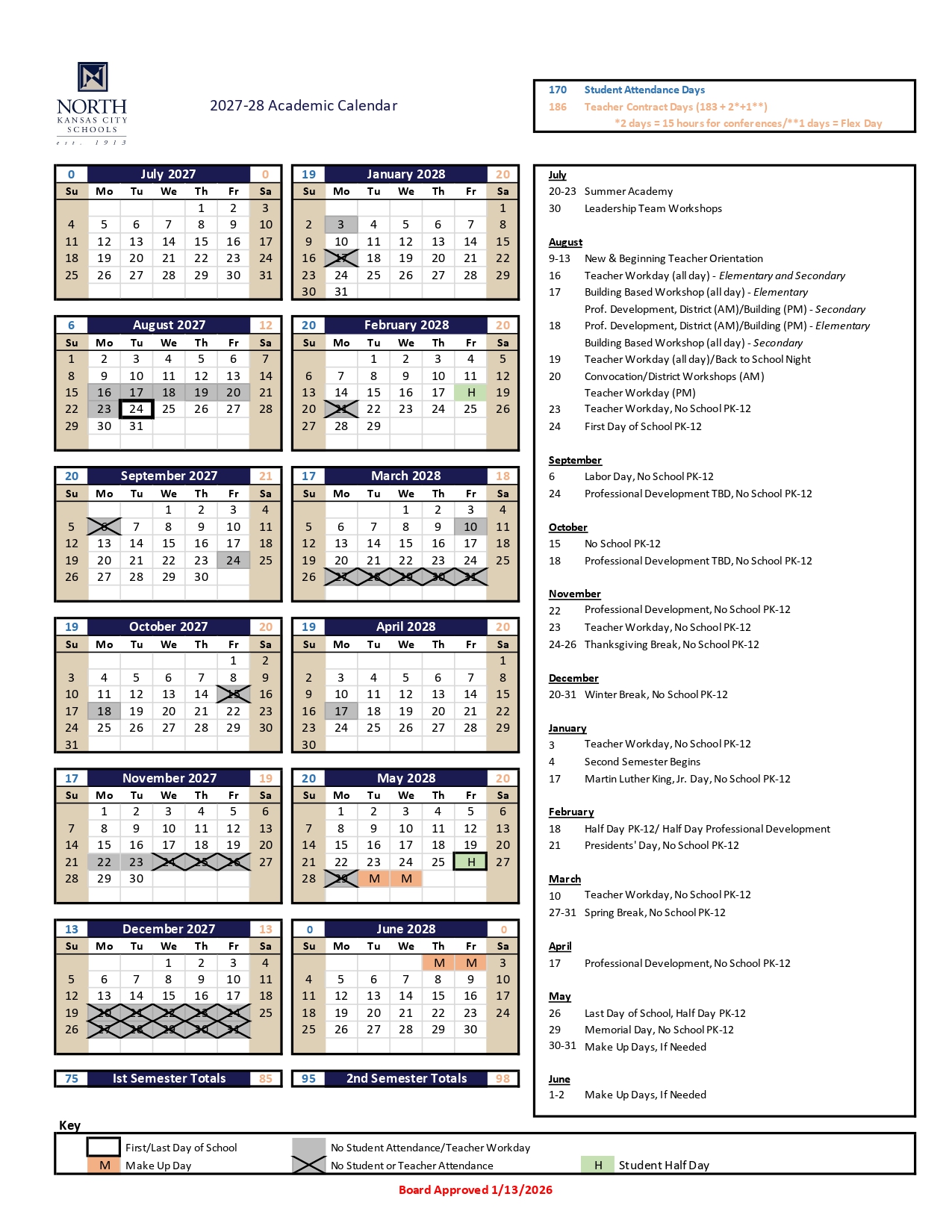 North Kansas City School District Holidays 2027-2028